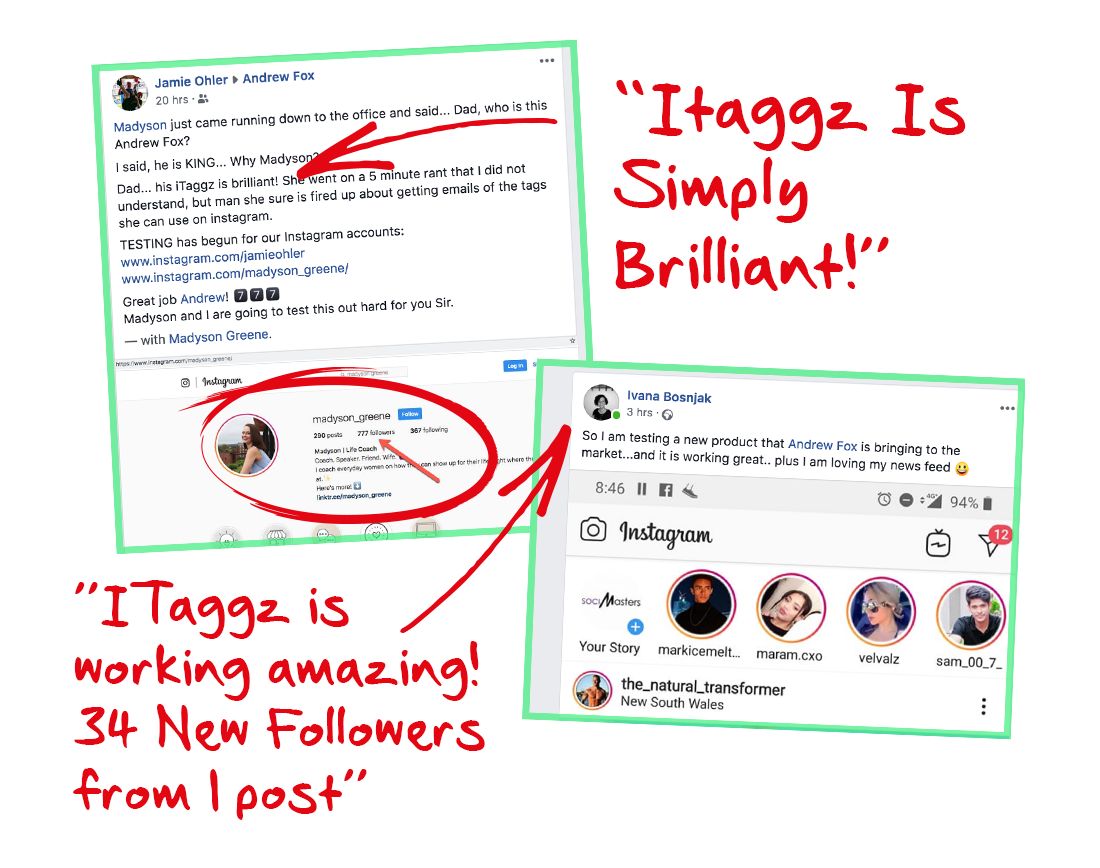 Simply join Itaggz and try us out. If you do not see an instant boost in engagement and growth or un happy in any way just email us within 30 days and we will offer full refund. We are so confident that you will love this product and it will fulfill every expectation you have